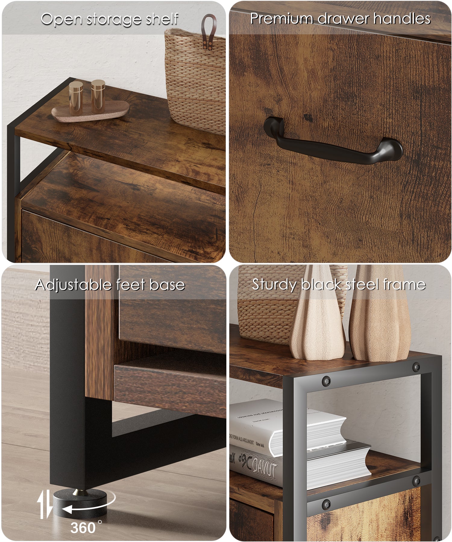 - A Sleek Piece In Your Home - The rustic brown finish presents a classical vintage look, the hard black steel frame makes it full of industrial accent. Two elements bump and blend, bringing an practical freestanding shoe cabinet as well a beautiful decor to your home